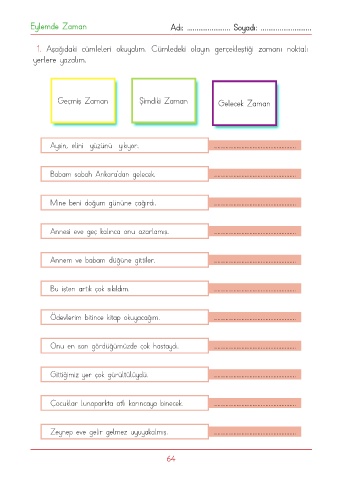 1. Aşağıdaki cümleleri okuyalım. Cümledeki olayın gerçekleştiği zamanı noktalı