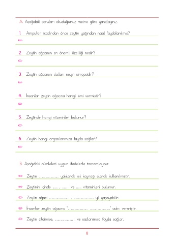 A. Aşağıdaki soruları okuduğunuz metne göre yanıtlayınız.