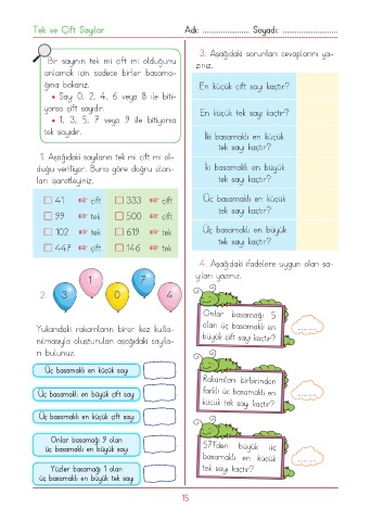 1. Aşağıdaki sayıların tek mi çift mi ol-