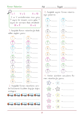 Romen Rakamları Adı: ....................... Soyadı: ...........................