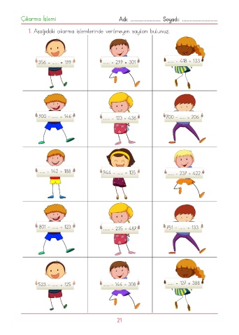 Çıkarma İşlemi Adı: ....................... Soyadı: ...........................