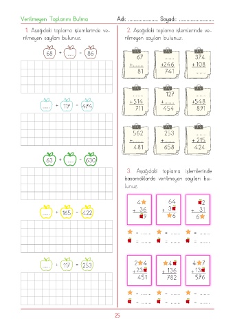Verilmeyen Toplanını Bulma Adı: ....................... Soyadı: ...........................