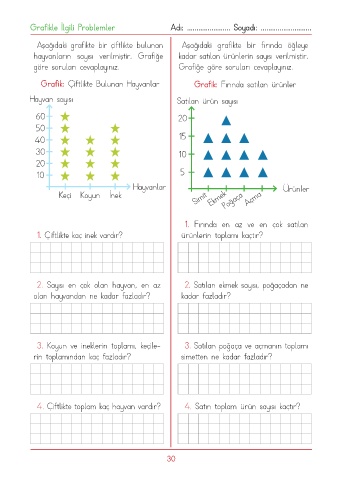 Grafik: Çiftlikte Bulunan Hayvanlar Grafik: Fırında satılan ürünler