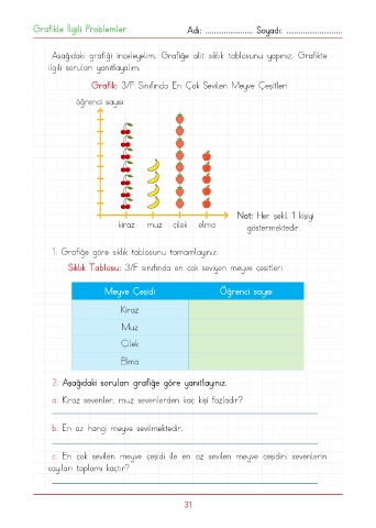 Grafik: 3/F Sınıfında En Çok Sevilen Meyve Çeşitleri
