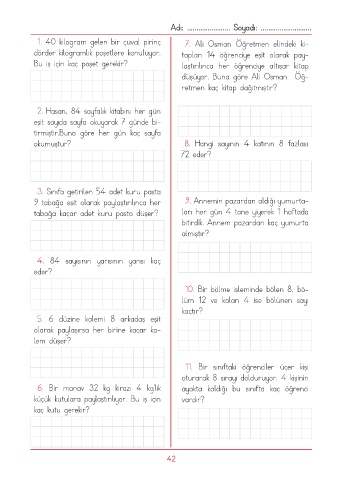 1. 40 kilogram gelen bir çuval pirinç 7. Ali Osman Öğretmen elindeki ki-