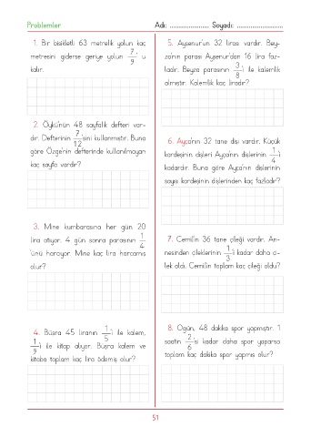 1. Bir bisikletli 63 metrelik yolun kaç 5. Ayşenur’un 32 lirası vardır. Bey-
