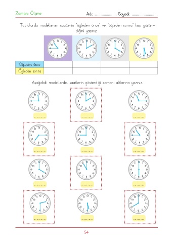 Zamanı Ölçme Adı: ....................... Soyadı: ...........................