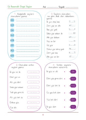 2. Okunuşları verilen 4. Verilen sayılarla