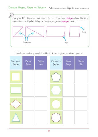 Dörtgen, Beşgen, Altgen ve Sekizgen Adı: ....................... Soyadı: ...........................