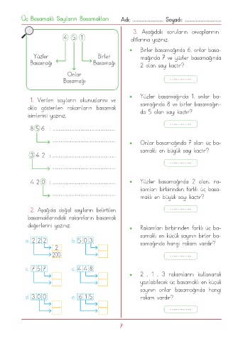 Üç Basamaklı Sayıların Basamakları Adı: ....................... Soyadı: ...........................