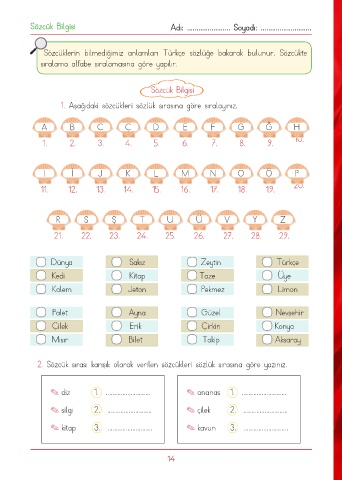 1. Aşağıdaki sözcükleri sözlük sırasına göre sıralayınız.