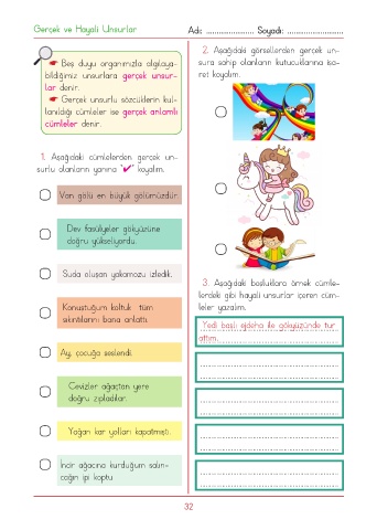 Gerçek ve Hayali Unsurlar Adı: ....................... Soyadı: ...........................