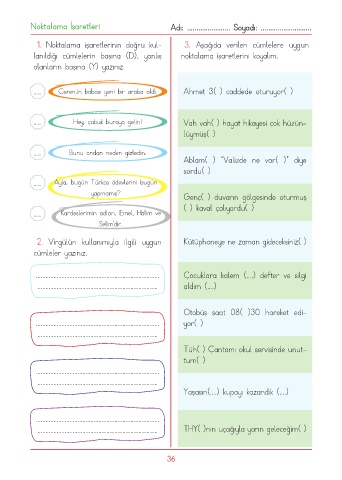 1. Noktalama işaretlerinin doğru kul- 3. Aşağıda verilen cümlelere uygun