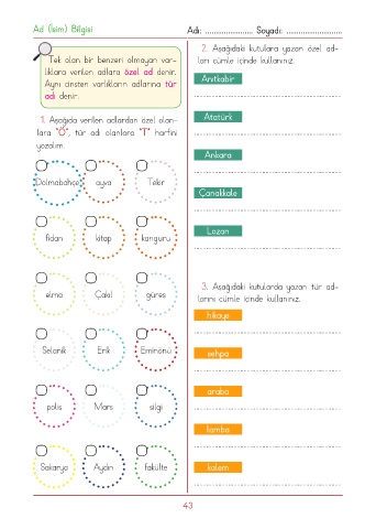 Ad (İsim) Bilgisi Adı: ....................... Soyadı: ...........................
