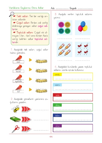 Varlıkların Sayılarına Göre Adlar Adı: ....................... Soyadı: ...........................