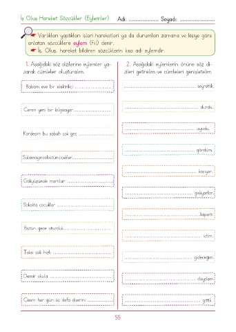1. Aşağıdaki söz dizilerine eylemler ya- 2. Aşağıdaki eylemlerin önüne söz di-