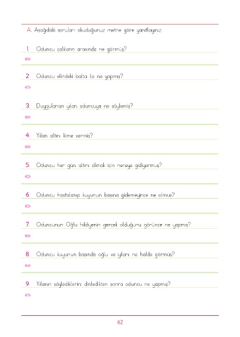 A. Aşağıdaki soruları okuduğunuz metne göre yanıtlayınız.