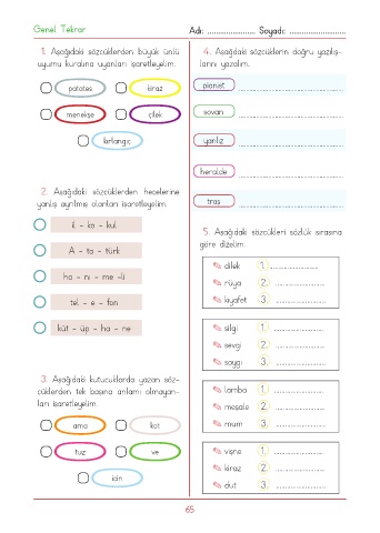 1. Aşağıdaki sözcüklerden büyük ünlü 4. Aşağdaki sözcüklerin doğru yazılış-