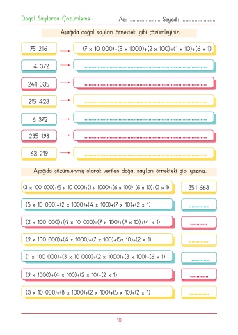 Aşağıda çözümlenmiş olarak verilen doğal sayıları örnekteki gibi yazınız.