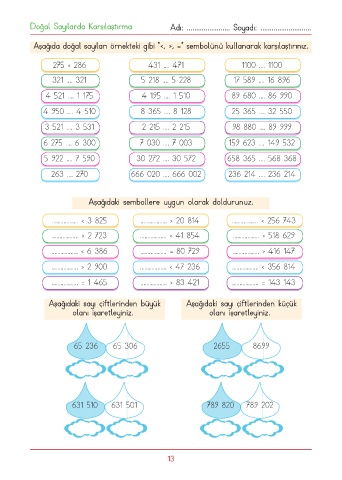 Doğal Sayılarda Karşılaştırma Adı: ....................... Soyadı: ...........................