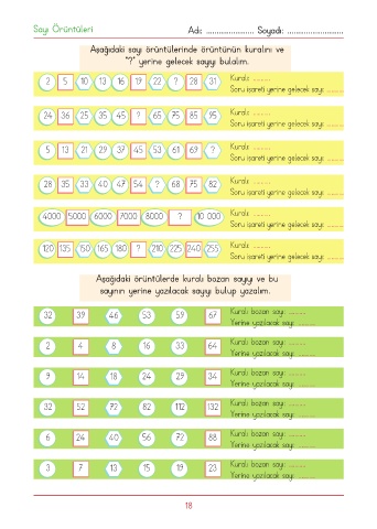 Sayı Örüntüleri Adı: ....................... Soyadı: ...........................