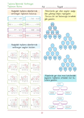 Aşağıdaki toplama işlemlerinde Balonlarda yer alan sayıları aşağı-