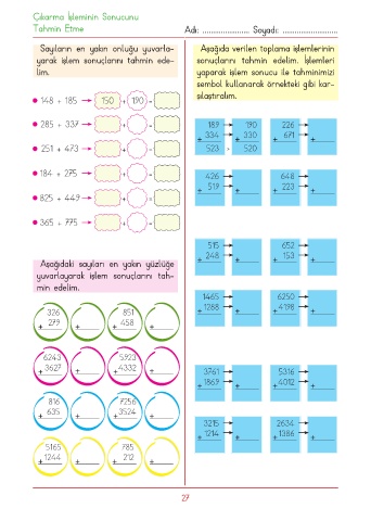 Sayıların en yakın onluğu yuvarla- Aşağıda verilen toplama işlemlerinin