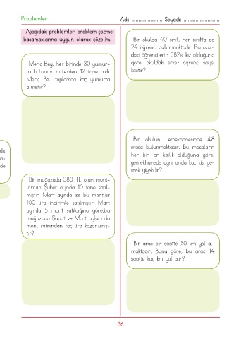 basamaklarına uygun olarak çözelim. Bir okulda 40 sınıf, her sınıfta da