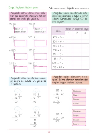 Doğal Sayılarda Bölme İşlemi Adı: ....................... Soyadı: ...........................