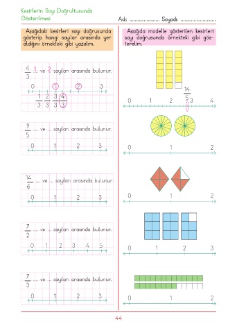 Aşağıdaki kesirleri sayı doğrusunda Aşağıda modelle gösterilen kesirleri