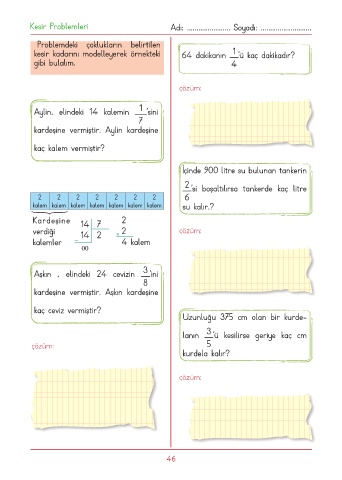 Kesir Problemleri Adı: ....................... Soyadı: ...........................