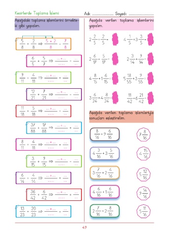 Kesirlerde Toplama İşlemi Adı: ....................... Soyadı: ...........................