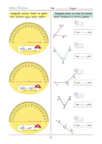 Aşağıdaki açıölçer (iletki) ile göste- Aşağıdaki açıları açı ölçer ile ölçerek