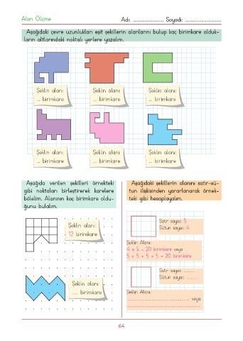 bölelim. Alanının kaç birimkare oldu- teki gibi hesaplayalım.