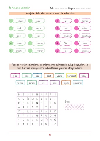 Aşağıdaki kelimeleri eş anlamlıları ile eşleştiriniz.