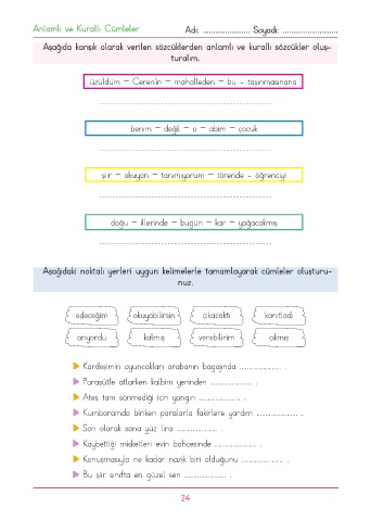 Anlamlı ve Kurallı Cümleler Adı: ....................... Soyadı: ...........................