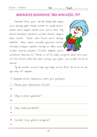 mi?” der. Hoca’nın daha fazla üzüm vermeye niyeti yoktur, ama çocukları kırmak da