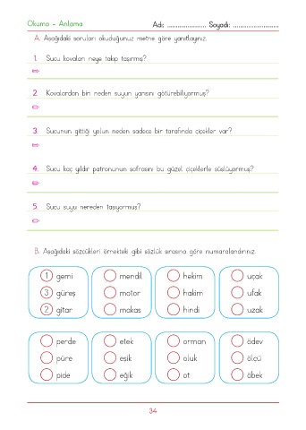 Okuma - Anlama Adı: ....................... Soyadı: ...........................