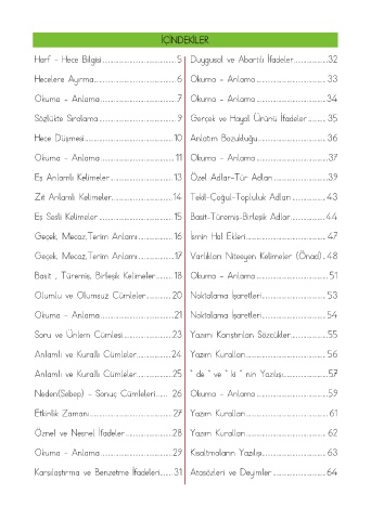 Basit , Türemiş, Birleşik Kelimeler ......... 18 Okuma - Anlama ........................................ 51