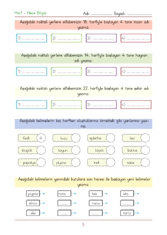 Aşağıdaki kelimelerin kaç harften oluştuklarına örnekteki gibi yanlarına yazı-