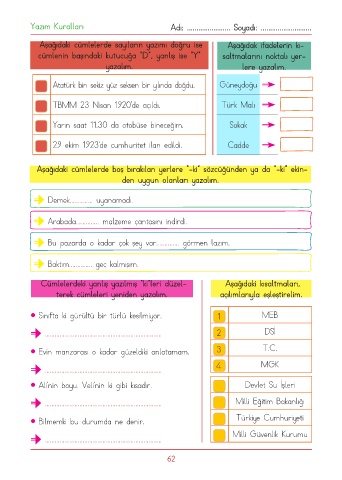 Yazım Kuralları Adı: ....................... Soyadı: ...........................
