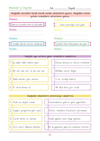 Atasözleri ve Deyimler Adı: ....................... Soyadı: ...........................