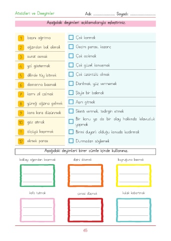 Aşağıdaki deyimleri açıklamalarıyla eşleştiriniz.