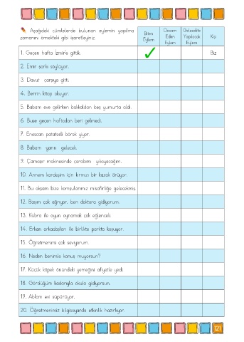Aşağıdaki cümlelerde bulunan eylemin yapılma Biten Devam Gelecekte