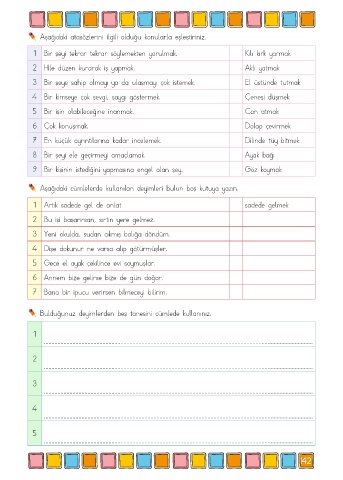 Aşağıdaki cümlelerde kullanılan deyimleri bulun boş kutuya yazın.