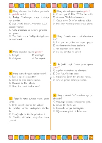9  Hangi cümlede, özel isimlerin yazımında            13  Hangi cümlede yazım yanlışı yoktur?