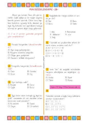 (1, 2 ve 3. soruları yukarıdaki paragrafa III. bakarsan IV. olur
