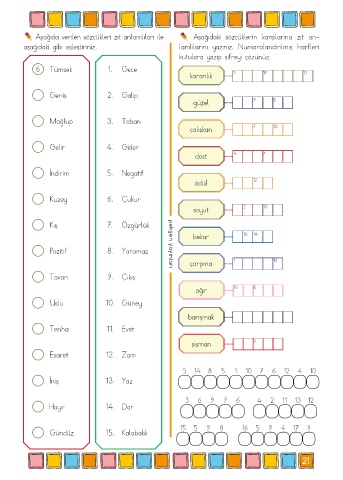 Aşağıda verilen sözcükleri zıt anlamlıları ile Aşağıdaki sözcüklerin karşılarına zıt an-