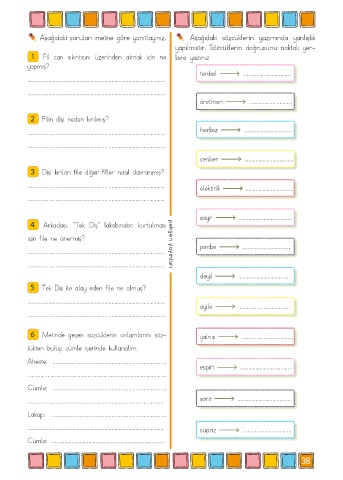 Aşağıdaki soruları metne göre yanıtlayınız. Aşağıdaki sözcüklerin yazımında yanlışlık