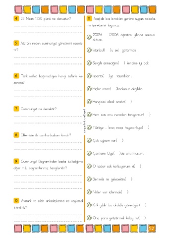 4  23 Nisan 1920 günü ne olmuştur?                    11  Aşağıda boş bırakılan yerlere uygun noktala-